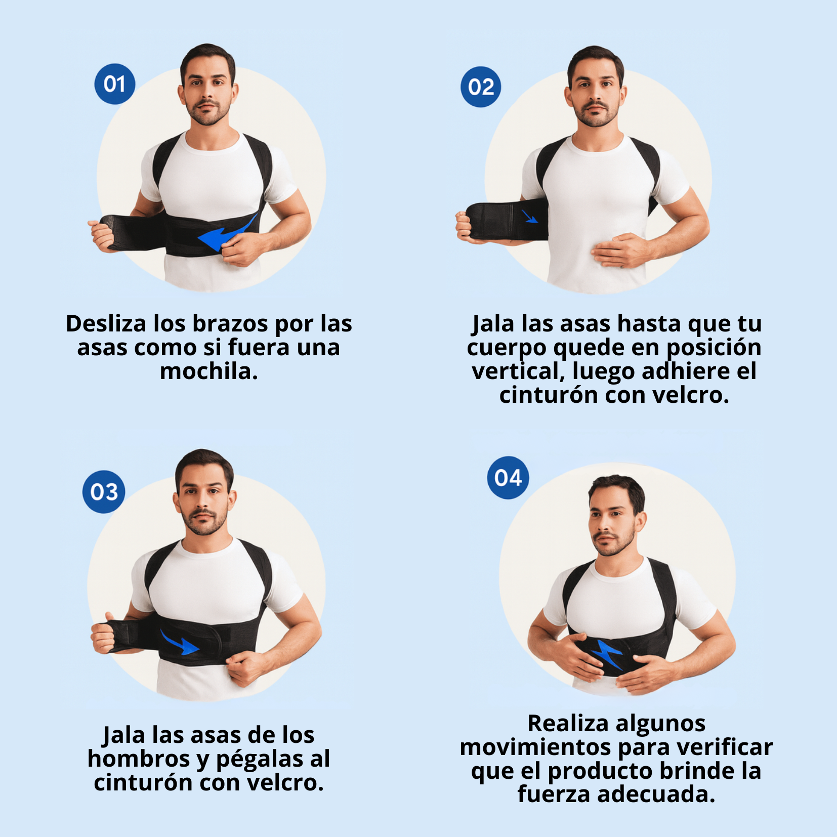 EspaldaFirme Pro™ aplica un soporte firme en la zona lumbar y cintura, estabilizando tus músculos y alineando naturalmente la columna. Al ajustar los tirantes, activas la memoria muscular: tus músculos empiezan a mantenerse derechos sin que el corrector esté puesto.
